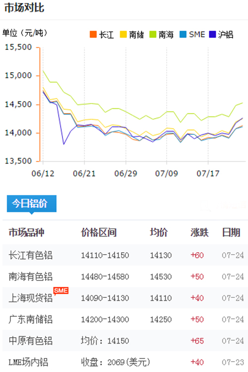 鋁錠價格今日鋁價2018-7-24