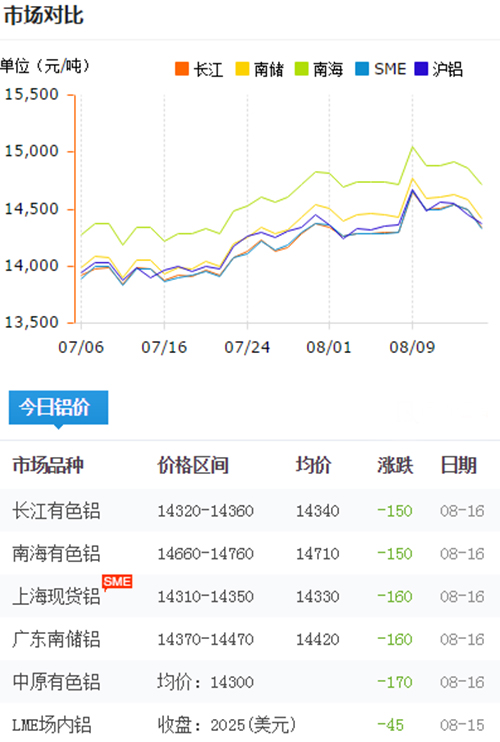 鋁錠價格今日鋁價2018-8-16
