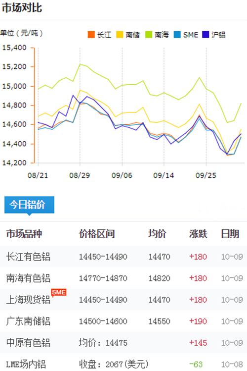 鋁錠價格今日鋁價2018-10-9