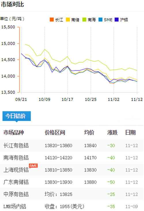 鋁錠價(jià)格今日鋁價(jià)2018-11-12