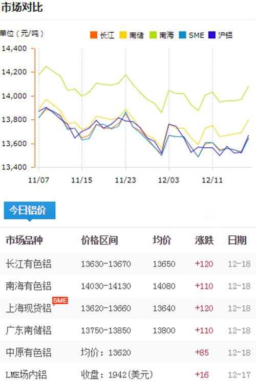 鋁錠價(jià)格今日鋁價(jià)2018-12-18