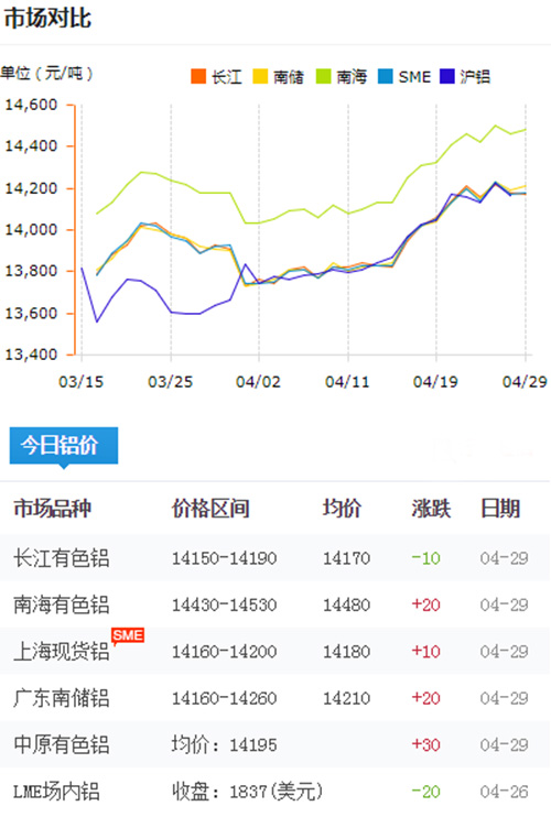 鋁錠價格今日鋁價2019-04-28