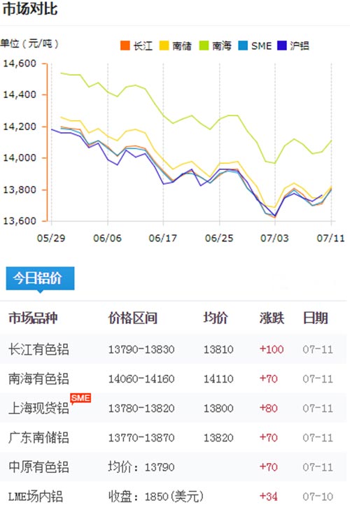 鋁錠價(jià)格今日鋁價(jià)2019-07-11