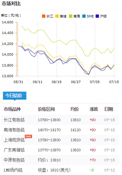 鋁錠價格今日鋁價2019-07-15