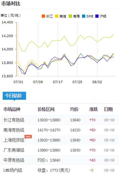 鋁錠價(jià)格今日鋁價(jià)2019-08-10