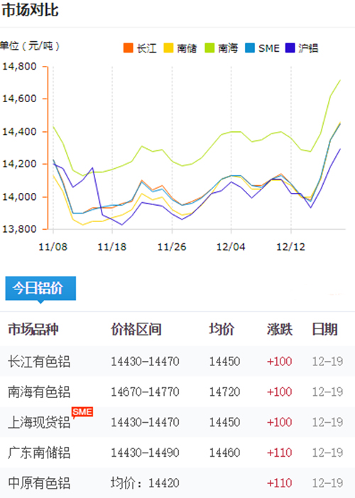 鋁錠價格今日鋁價2019-12-19