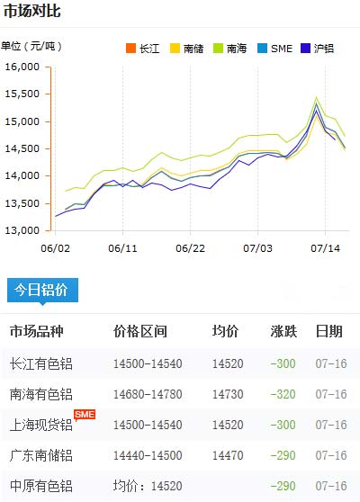 鋁錠價格今日鋁價2020-07-16