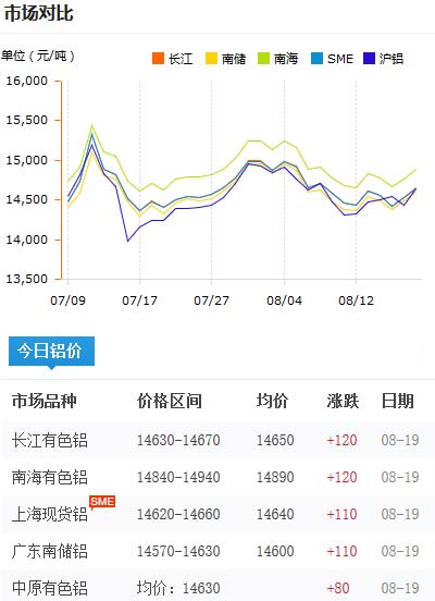 鋁錠價格今日鋁價2020-08-19