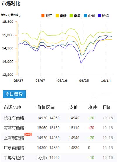 鋁錠價(jià)格今日鋁價(jià)2020-10-16