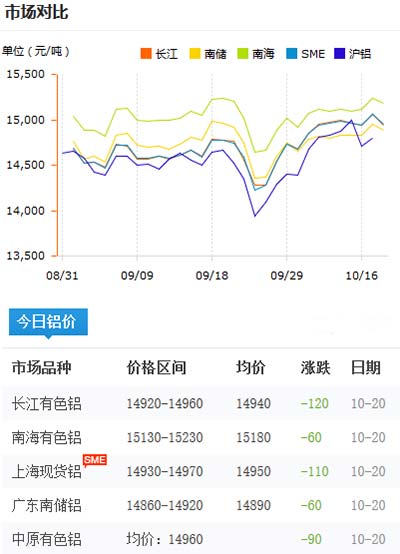 鋁錠價格今日鋁價2020-10-20