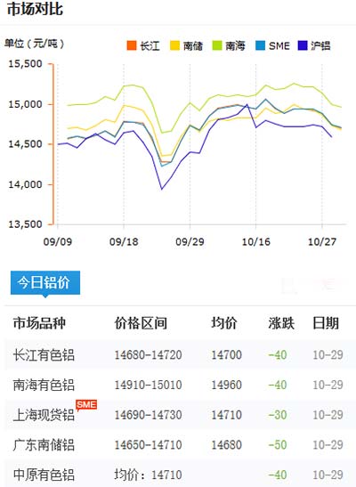 鋁錠價(jià)格今日鋁價(jià)2020-10-29