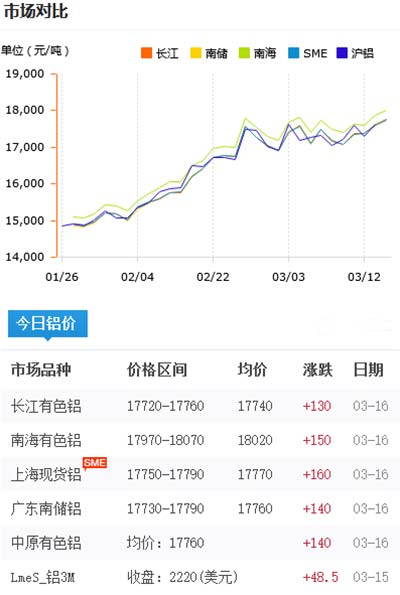鋁錠價(jià)格今日鋁價(jià)2021-03-16