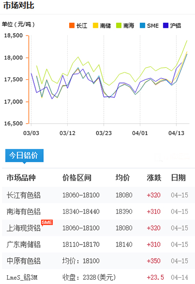 鋁錠價格今日鋁價2021-04-15