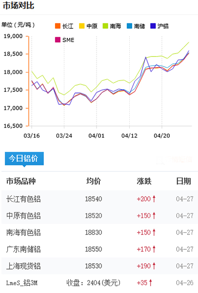 鋁錠價格今日鋁價2021-04-27