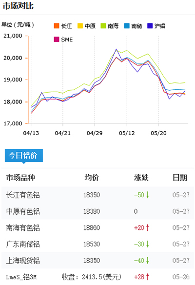 鋁錠價格今日鋁價2021-05-27