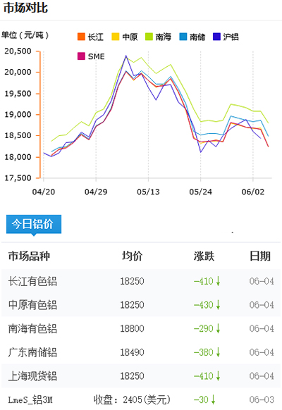 鋁錠價格今日鋁價2021-06-04