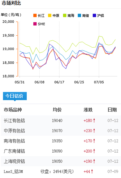 鋁錠價格今日鋁價2021-07-12