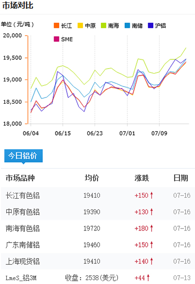 鋁錠價格今日鋁價2021-07-16