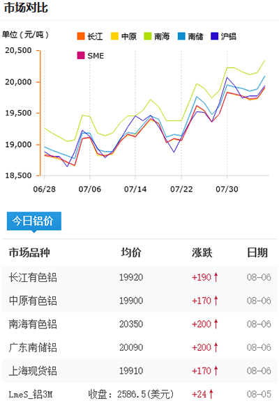鋁錠價格今日鋁價2021-08-06