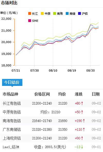 鋁錠價格今日鋁價2021-09-02