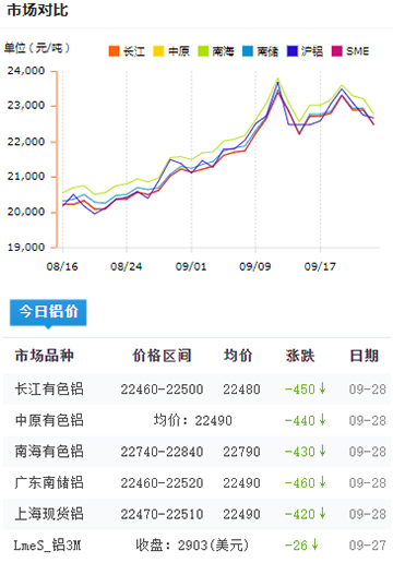 鋁錠價格今日鋁價2021-09-28