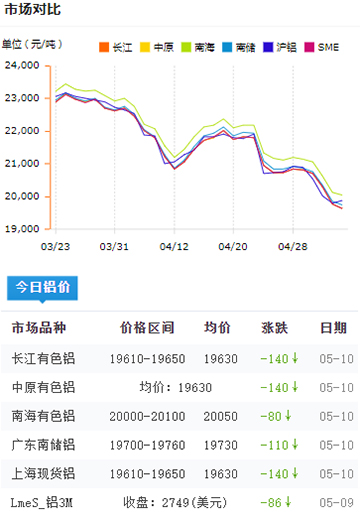 鋁錠價格今日鋁價2022-05-10