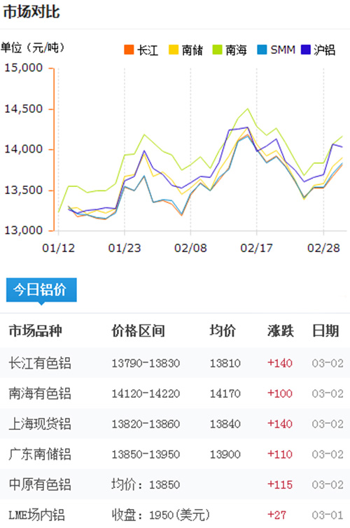 鋁錠價格今日鋁價2017-3-2