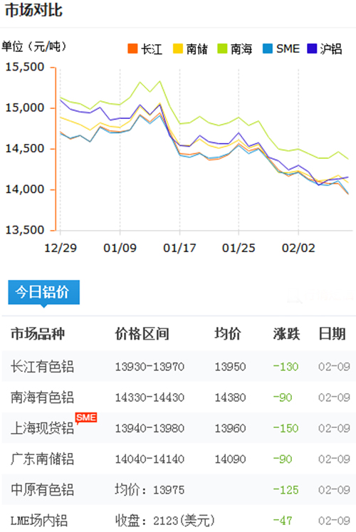 鋁錠價格今日鋁價2018-2-9