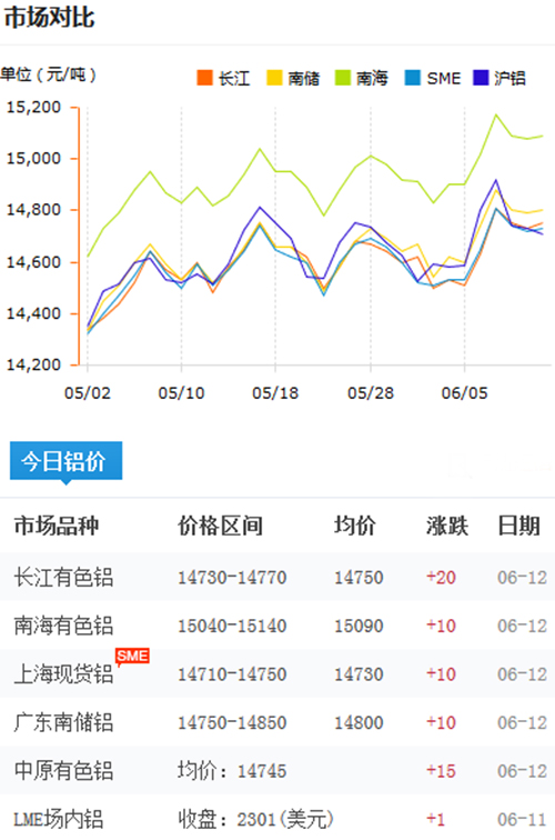 鋁錠價(jià)格今日鋁價(jià)2018-6-12
