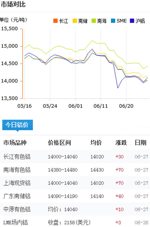 鋁錠價格今日鋁價2018-6-27