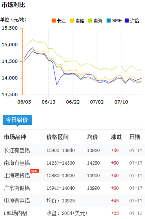 鋁錠價格今日鋁價2018-7-17