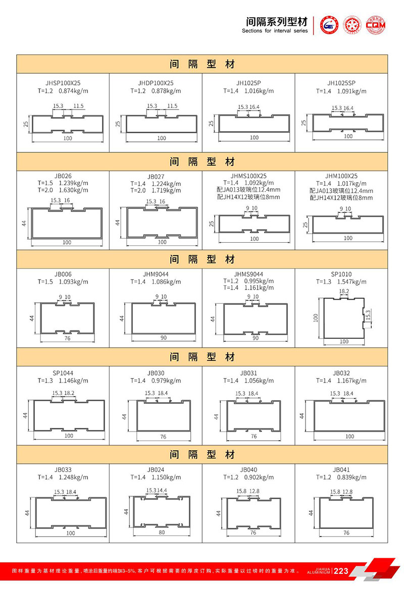 鋁型材規格型號:固定/間隔型材